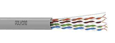 Range: CAT 5E & CAT 6 – twisted pair, insulated with high-quality polyethylene and unshielded light gray PVC jacket with improved fire-retardant properties, low attenuation, and cross talk and low structural return loss.